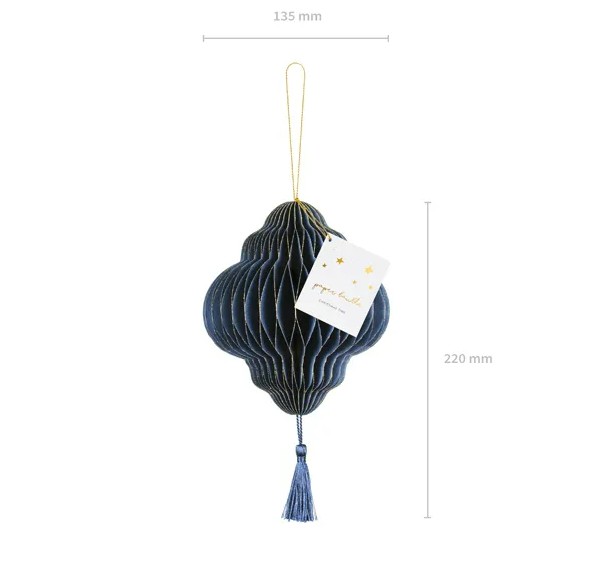 Dieser Weihnachtshänger in Honeycomb-Optik bringt festlichen Glanz in dein Zuhause. Der Papieranhänger in elegantem Blau mit feinem Goldrand sorgt für eine edle und warme Atmosphäre.