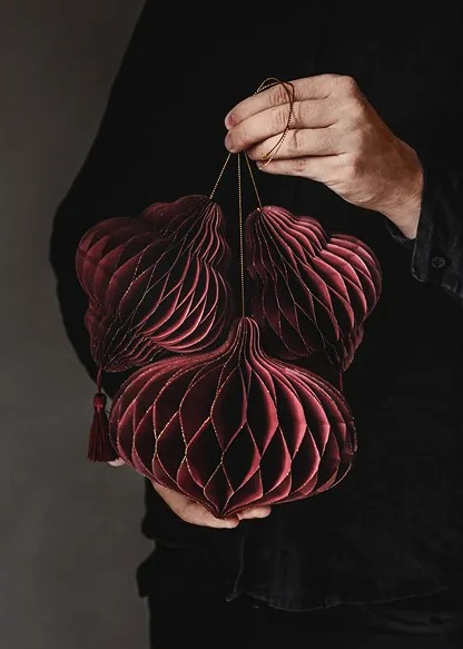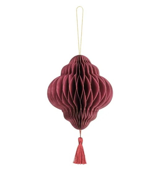 Dieser Weihnachtshänger in Honeycomb-Optik bringt festlichen Glanz in dein Zuhause. Der Papieranhänger in elegantem Weinrot mit feinem Goldrand sorgt für eine edle und warme Atmosphäre.