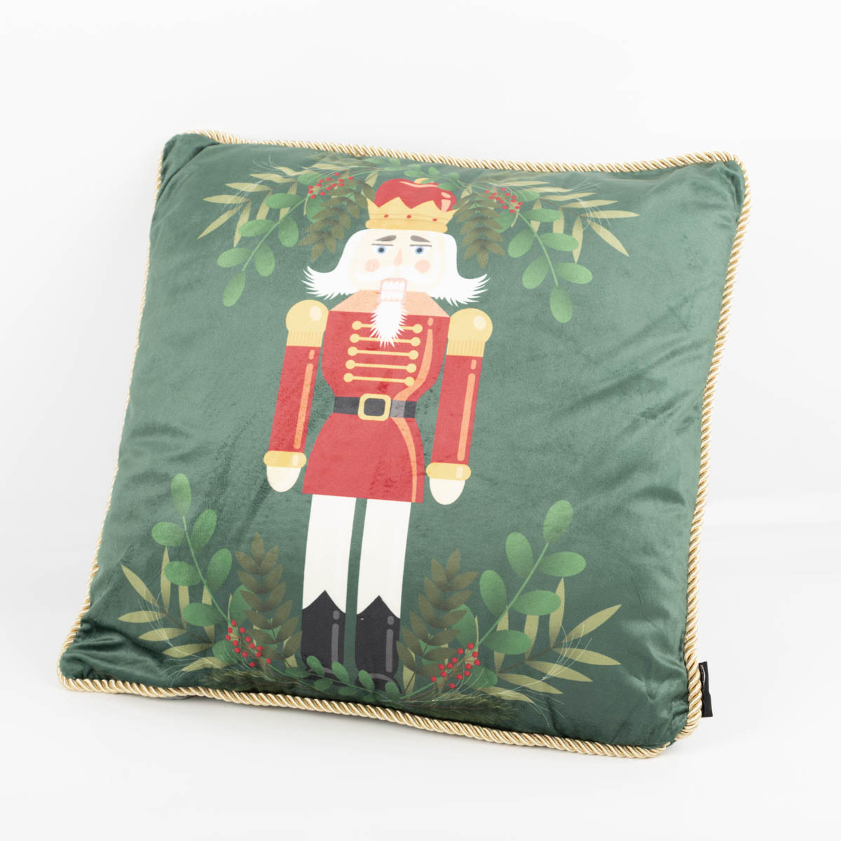 Dekokissen Nutcracker grün 45x45cm mit goldfarbiger Kederumrandung