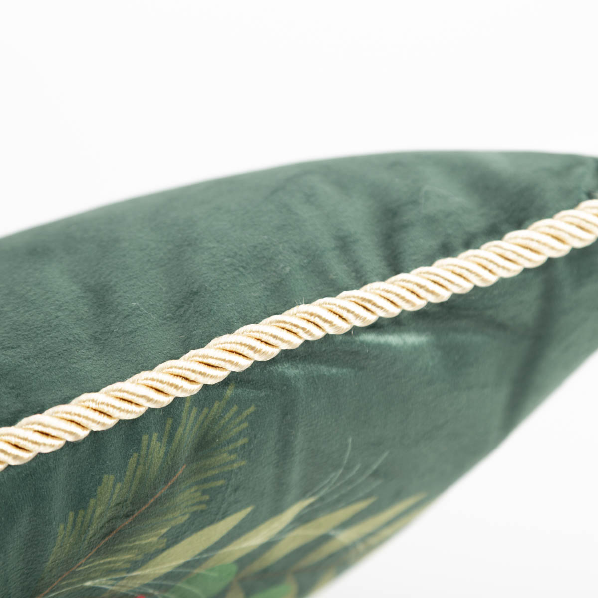 Edle Verarbeitung: Die goldfarbige Kordelumrandung setzt einen festlichen Akzent und macht das Kissen zu einem Blickfang.