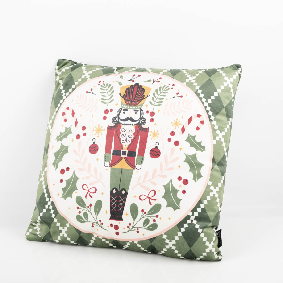 Weihnachtskissen mit klassischem Nussknacker-Print und Rautenmuster