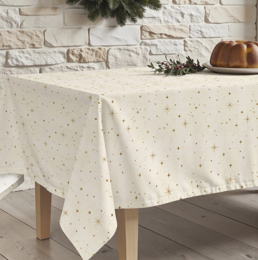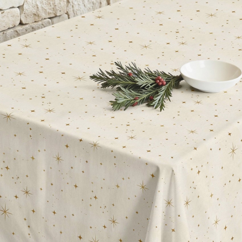 Abwaschbare Tischdecke Sterne natur gold – festliche Eleganz mit Funktion