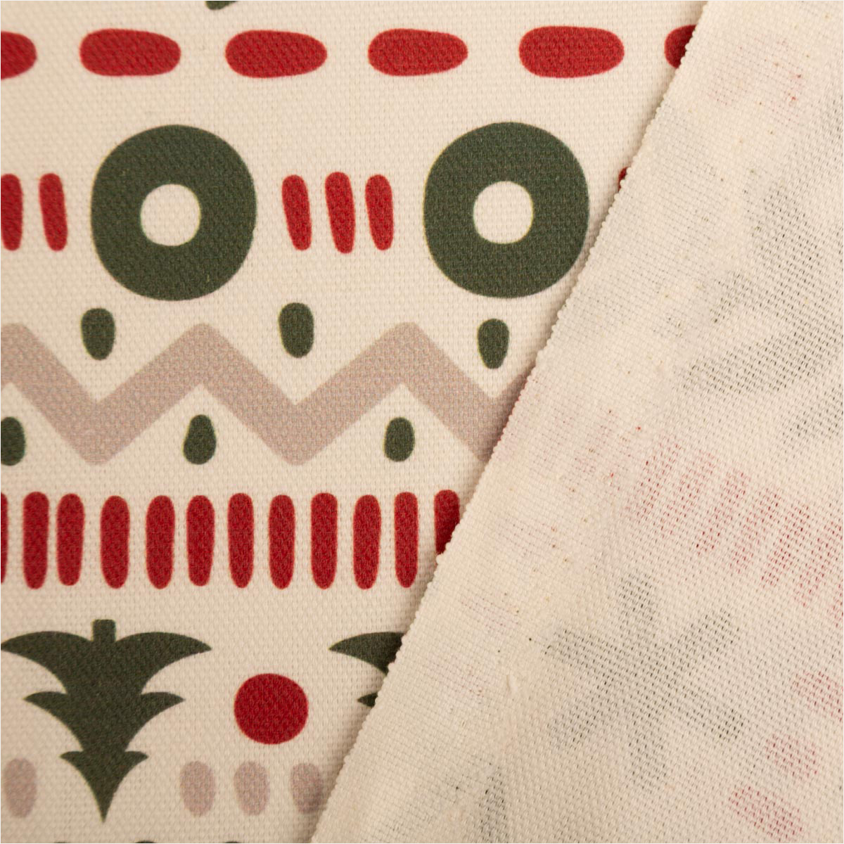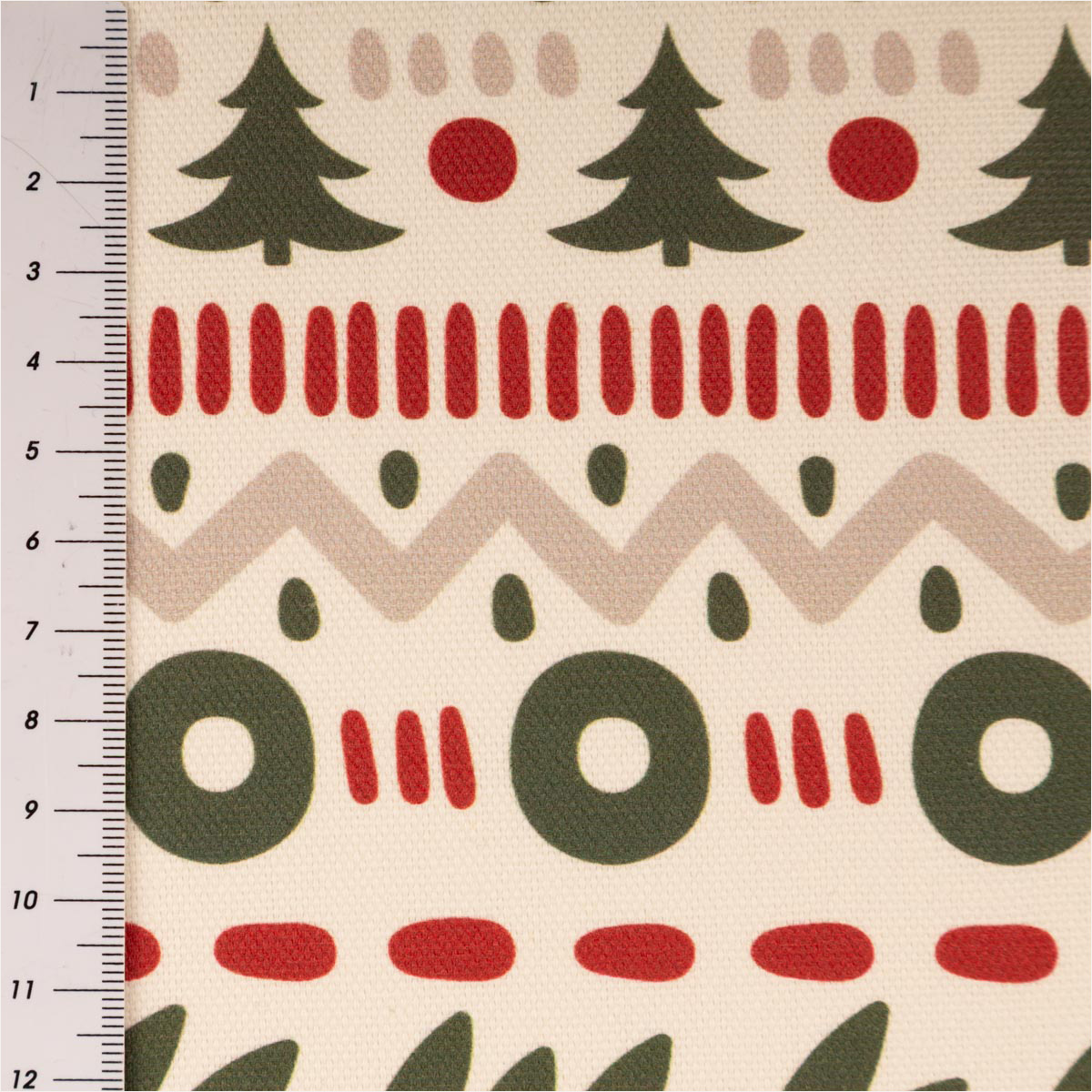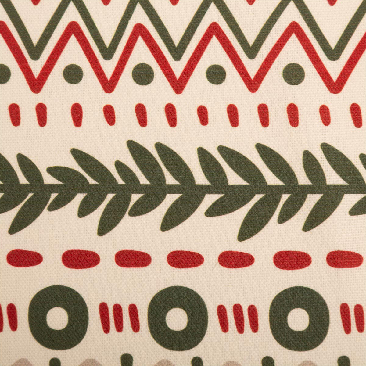 Dieser hochwertige Baumwollstoff mit modernem Zickzack-Muster in Weiß, Rot und Grün bringt nordische Weihnachtsstimmung in dein Zuhause. Die griffige Halbpanama-Qualität sorgt für Stabilität, während der feine Digitaldruck das geometrische Design brillant zur Geltung bringt.
