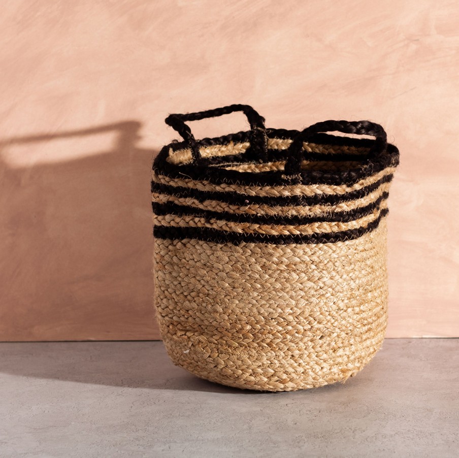 Handgeflochtener Seegras-Korb in natur mit schwarzen Streifen