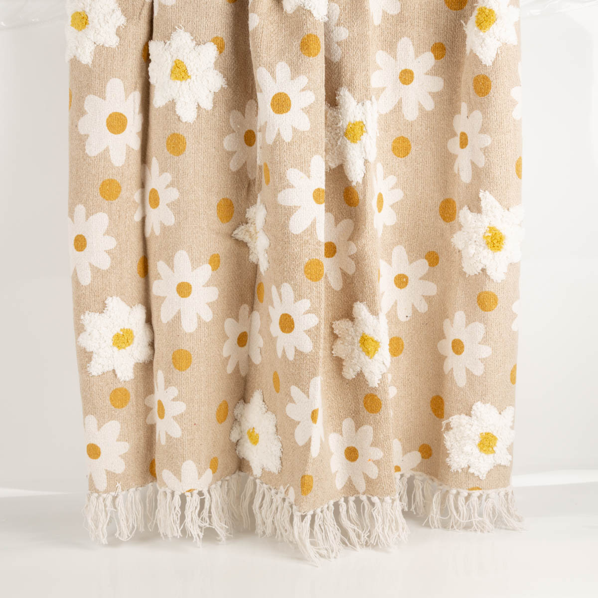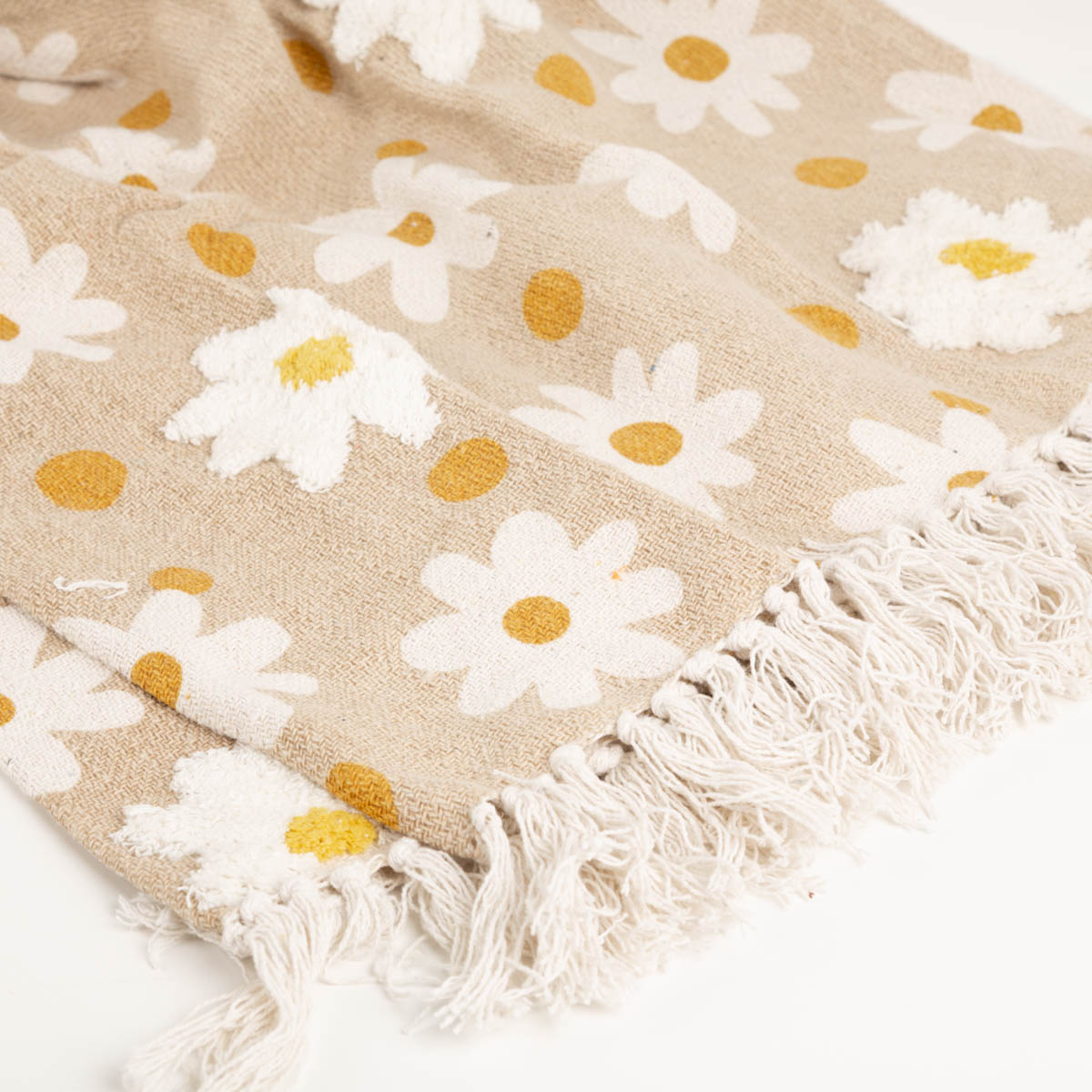Getuftete Plaid-Decke mit Gänseblümchen-Motiv in Natur, Gelb und Weiß