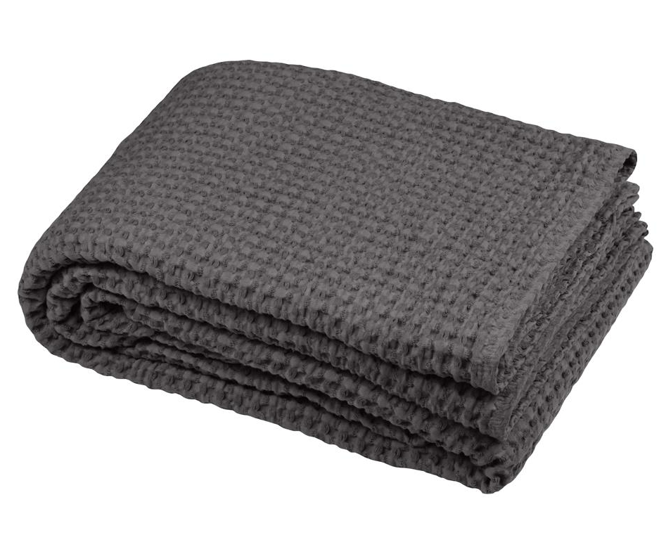 Decke Plaid mit Waffelstruktur aus Baumwolle anthrazit 160x130cm
