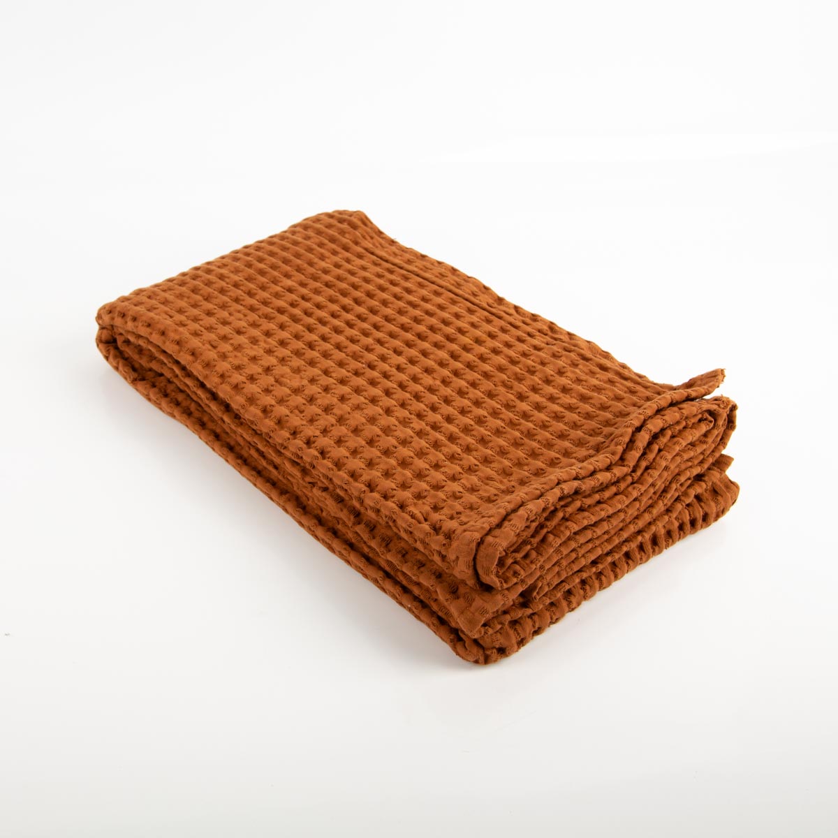 Decke Plaid mit Waffelstruktur aus Baumwolle terracotta-braun 160x130cm