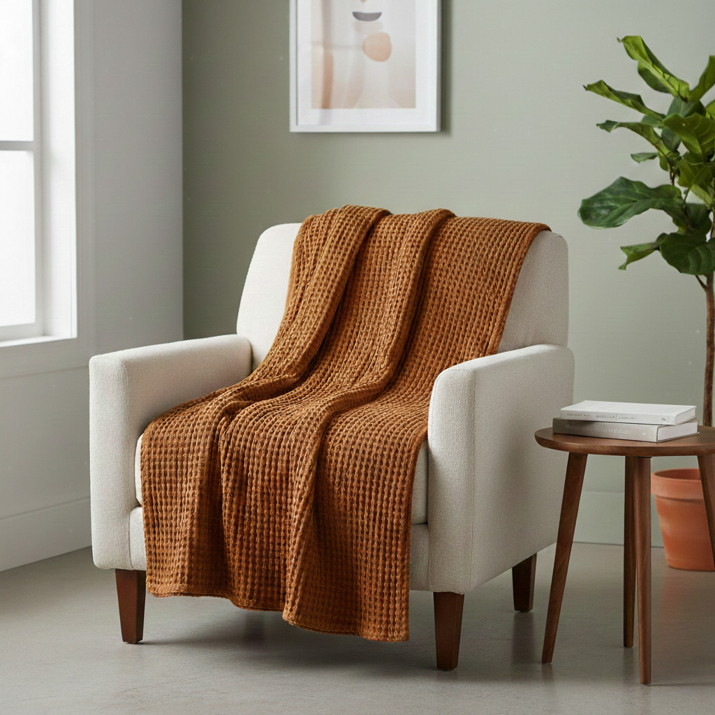 Plaid Decke mit Waffelstruktur – zeitloses Design in Terracotta-Braun