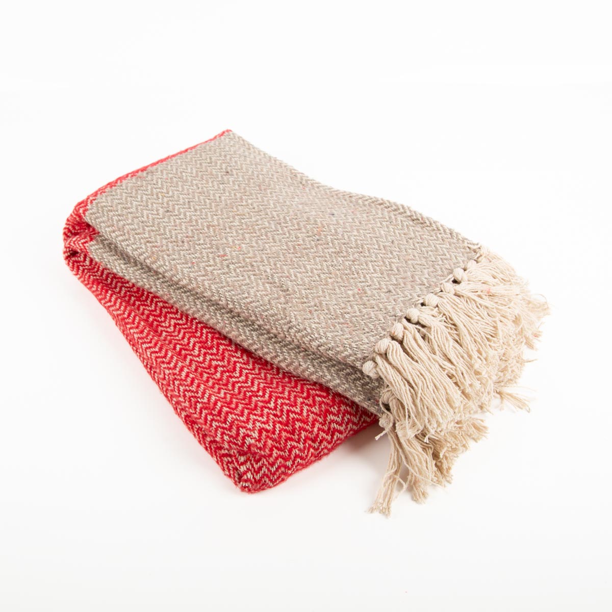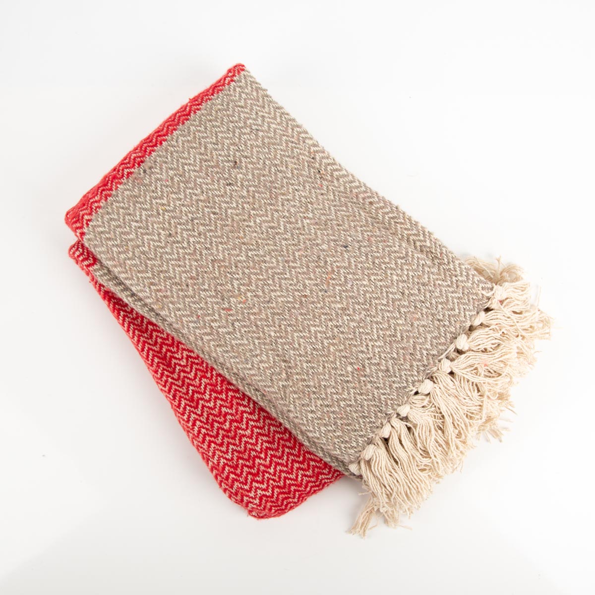 Kuscheldecke mit klassischem Fischgrät-Dessin in Natur und Rot