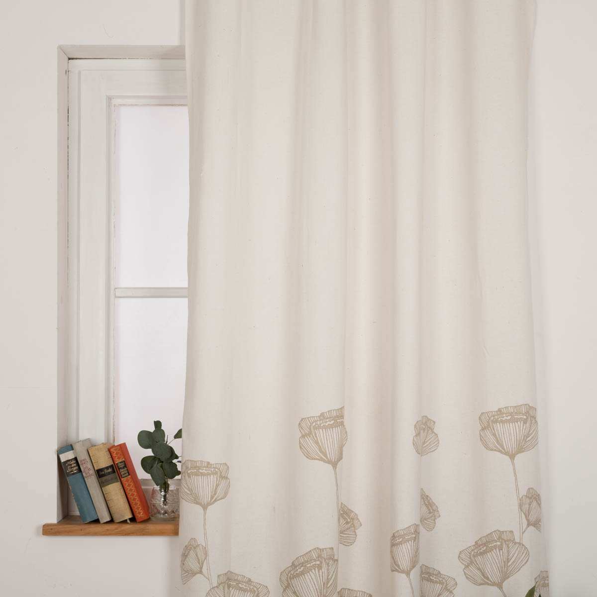 Blickdichter Ösenvorhang mit naturfarbenem Blumenmotiv
