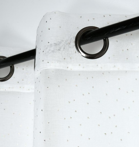 Ösenvorhang Voile „Goldene Dreiecke“ – 135x260 cm, weiß