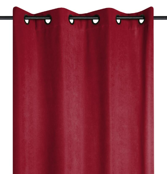 Vorne wurde ein flauschig-weicher, leicht strukturierter Stoff verarbeitet. Der Rotton setzt stilvolle Akzente und wirkt gleichzeitig modern. Die dunkelsilbernen Ösen ergänzen das moderne Design und harmonieren sowohl mit modernen Einrichtungsstilen als auch mit natürlichen Wohnkonzepten.