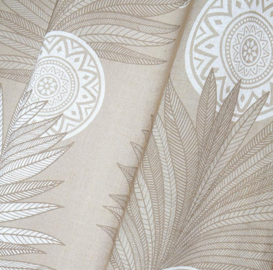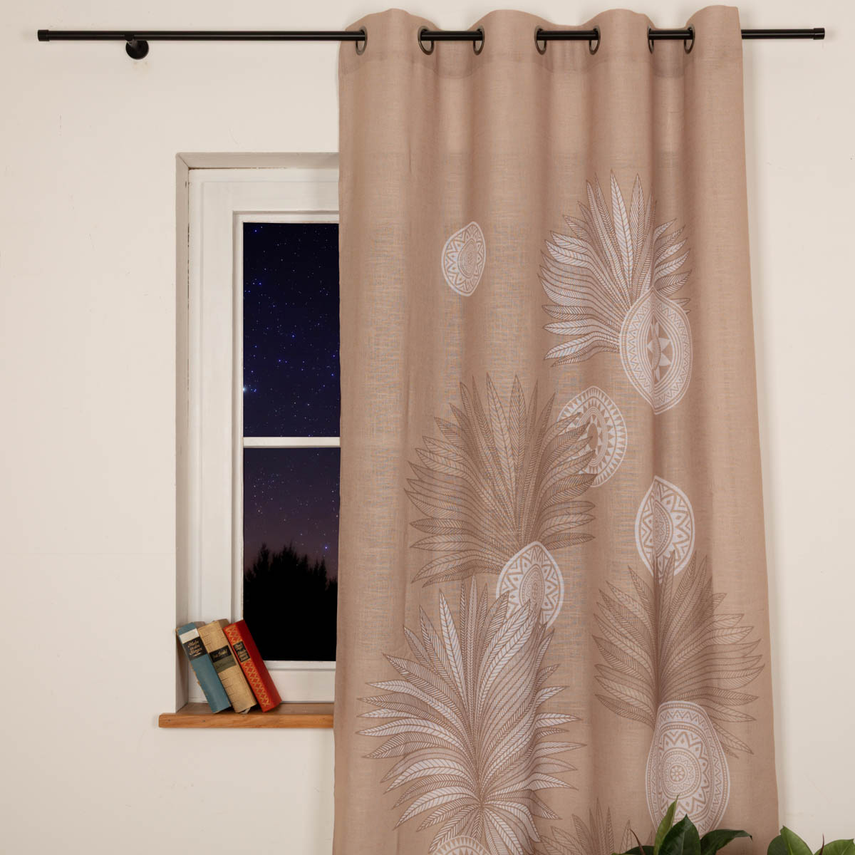 Ösenvorhang mit Leinenstruktur und Palmenblatt-Ornamenten – natürlich und dekorativ