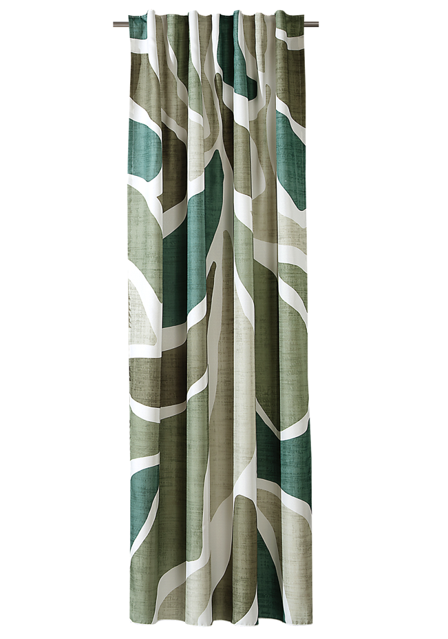Blickdichter Vorhang mit abstraktem Print in Grün und Weiß für eine moderne und wohnliche Fensterdekoration