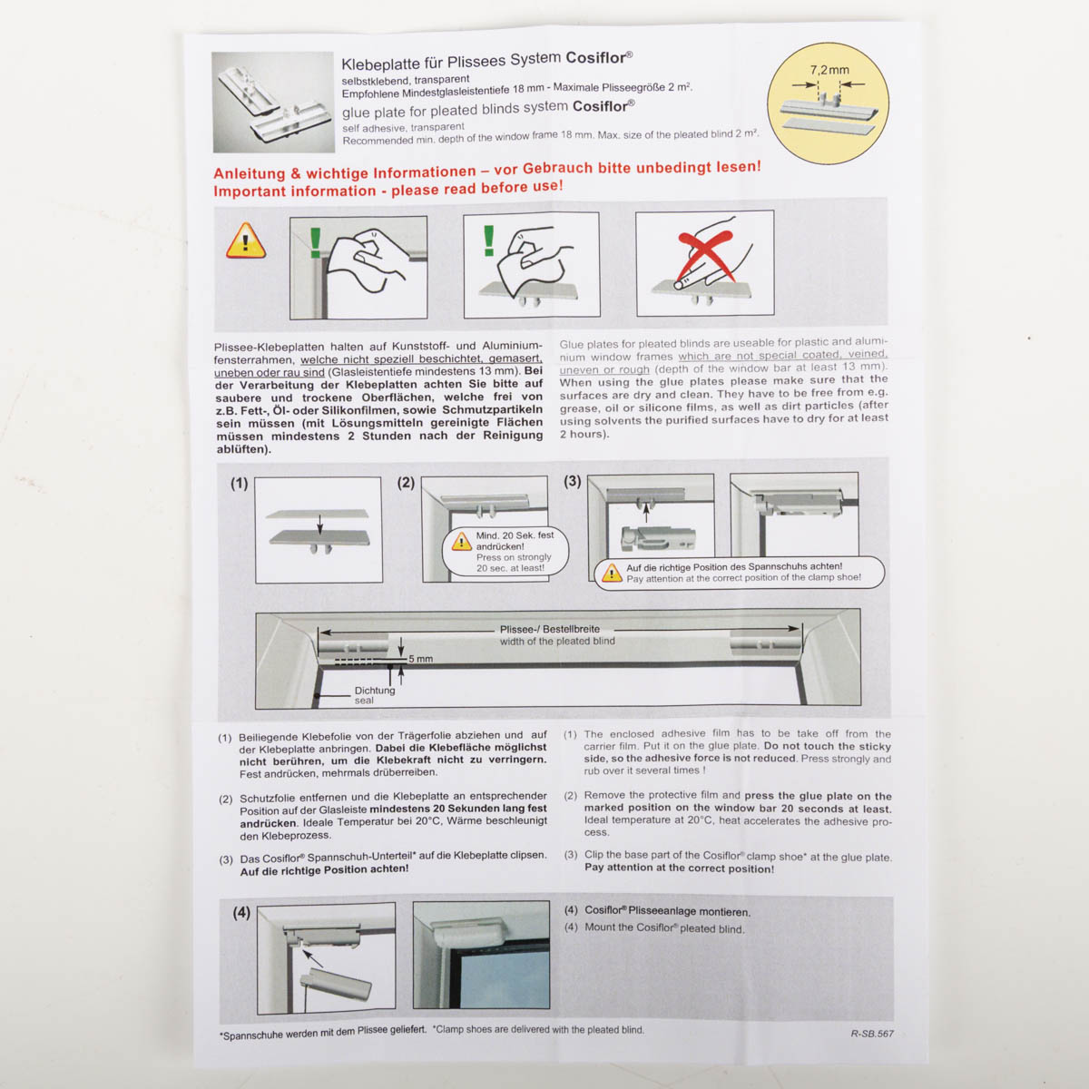 4 Stk Klebeplatten transparent für Plissees Cosiflor