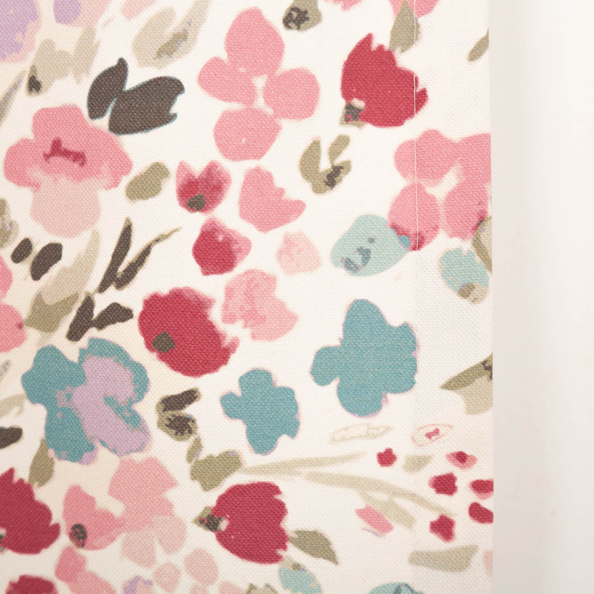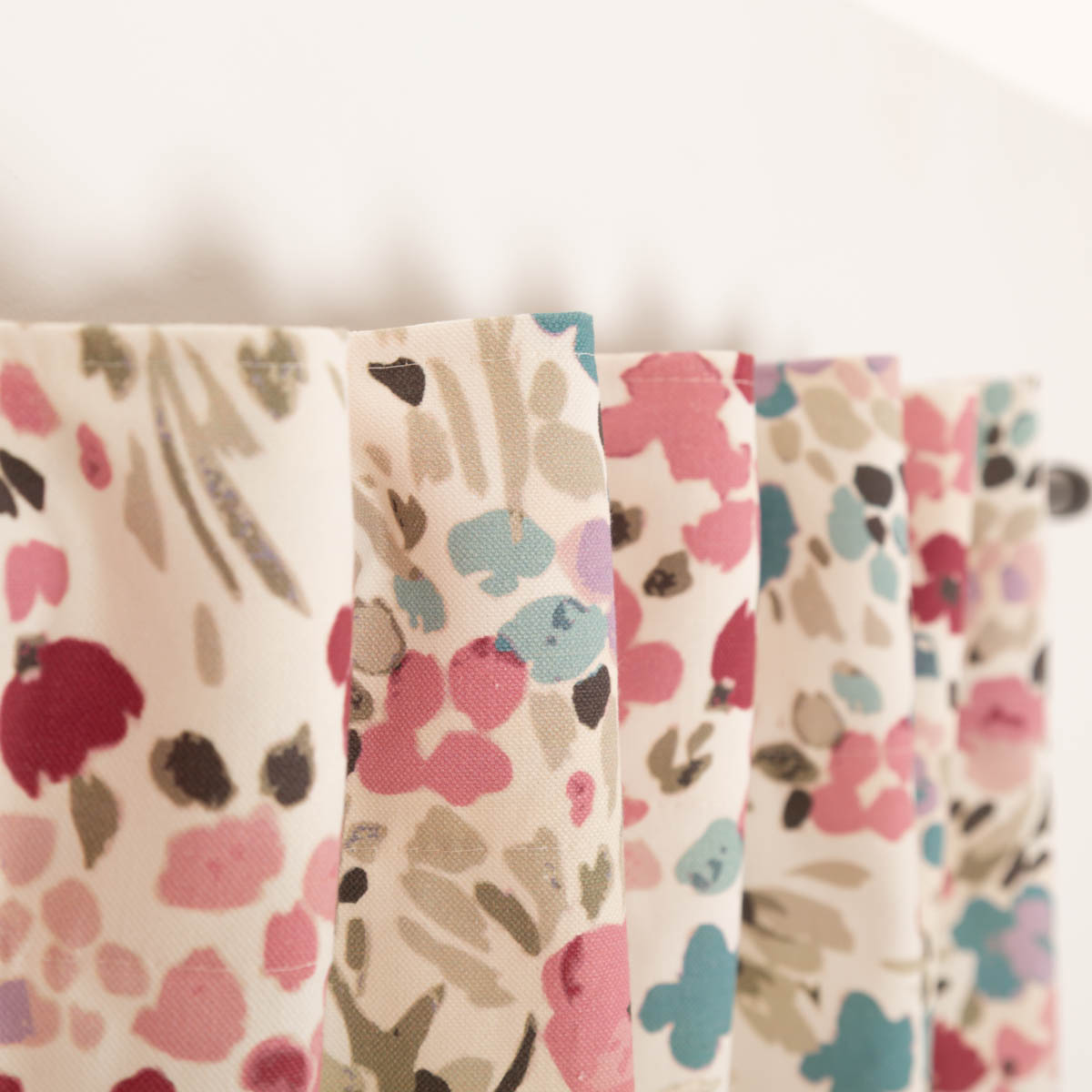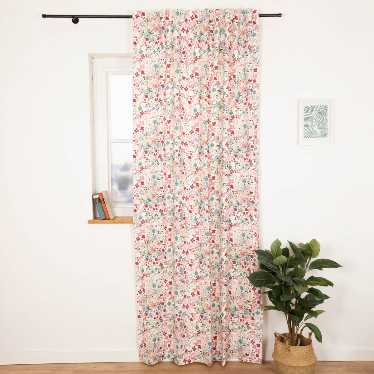 Hochwertiger Vorhang aus reiner Baumwolle mit Aquarell-Blüten in Rosa und Blau