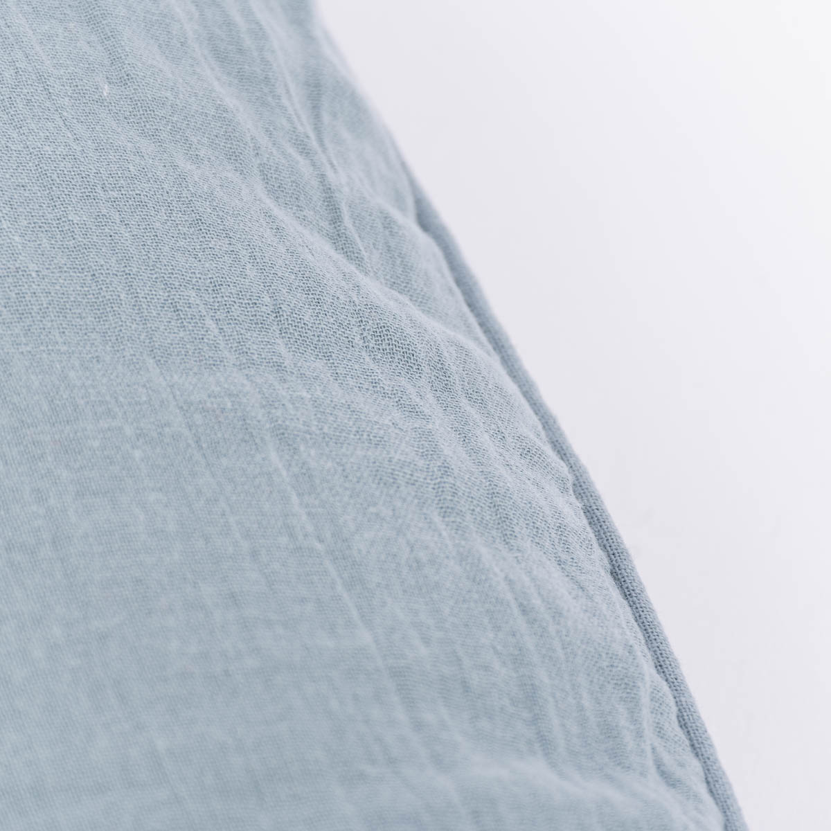 Eigentlich eher für Babyaccessoires bekannt, hält Musselin, oder auch Double Gaze genannt, nun auch bei den Wohntextilien für Tisch und Couch Einzug. Das Kissen fühlt sich super angenehm und weich an und wird garantiert zu deinem neuen Lieblingsstück.