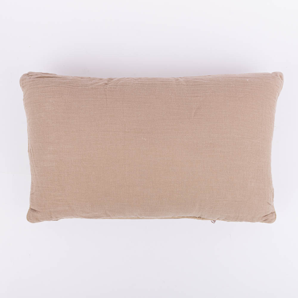 Dieses Kissen hat auf der einen Seite den populären Musselinstoff mit seiner herrlich natürlichen Textur und auf der anderen Seite, für etwas Stabilität, einen fein gewebten Baumwollstoff. Im Inneren ist das Kissen mit einer Füllung aus 100% Polyester versehen. Umrandet wird das Musselinkissen durch eine stilvolle Kederumrandung.