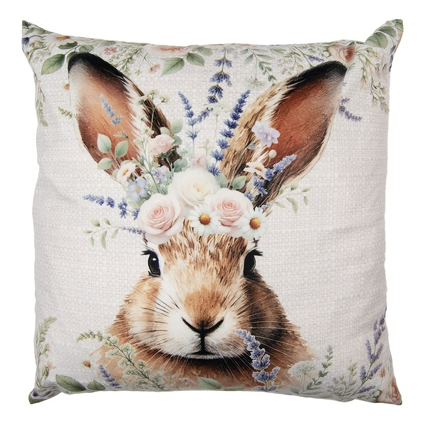 Clayre & Eef Kissenhülle Hasenkopf mit Blumen beige 45x45cm