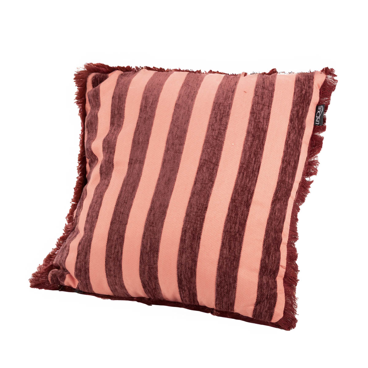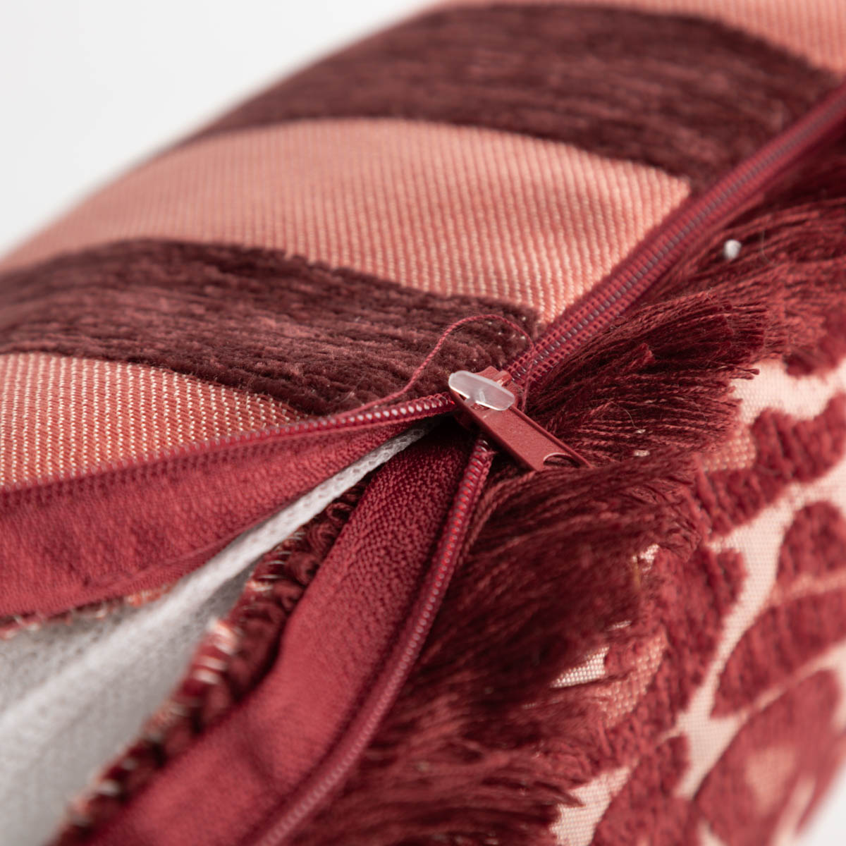 Dekokissen Nisa Leo & Streifen zweiseitig mit Fransenrand rot 45x45cm