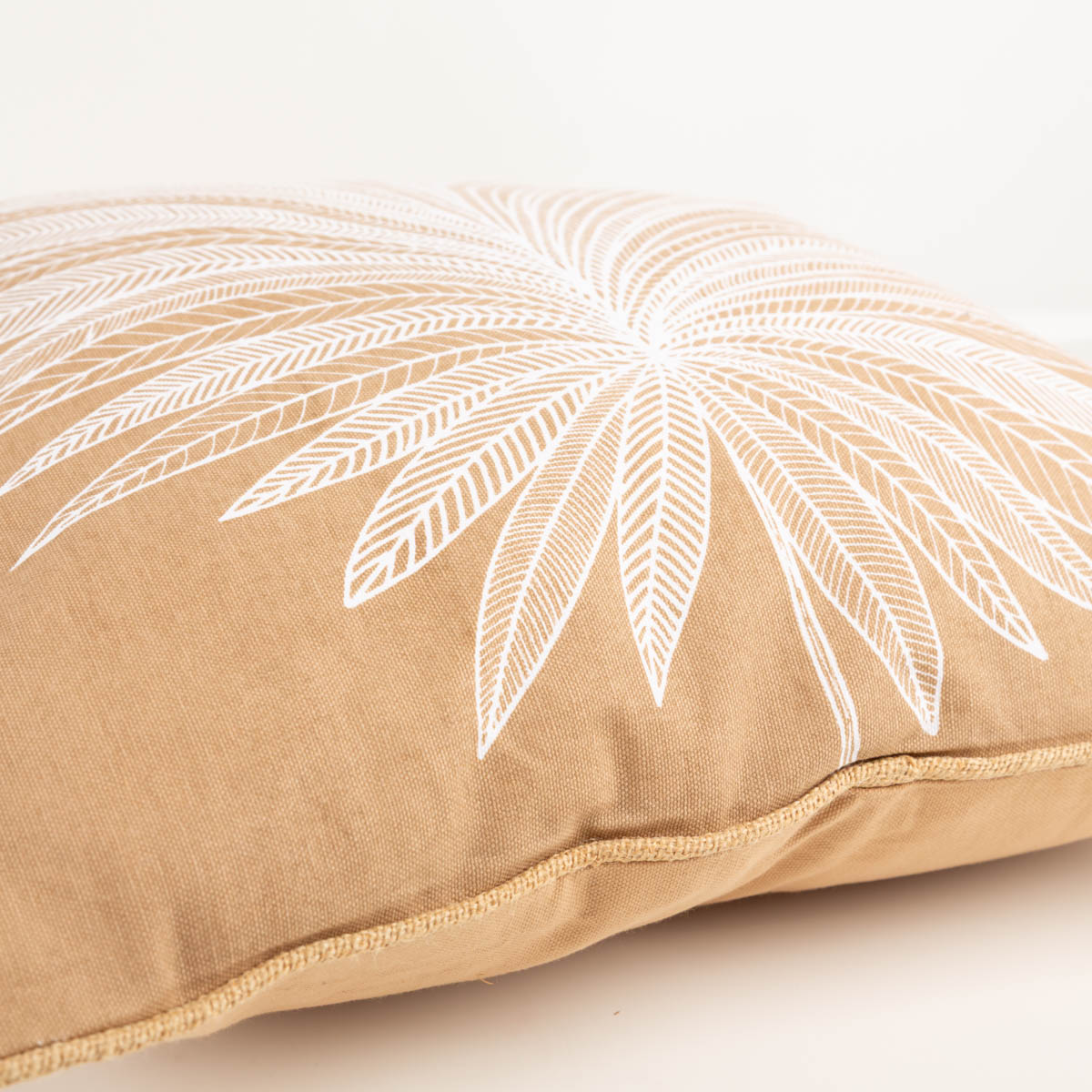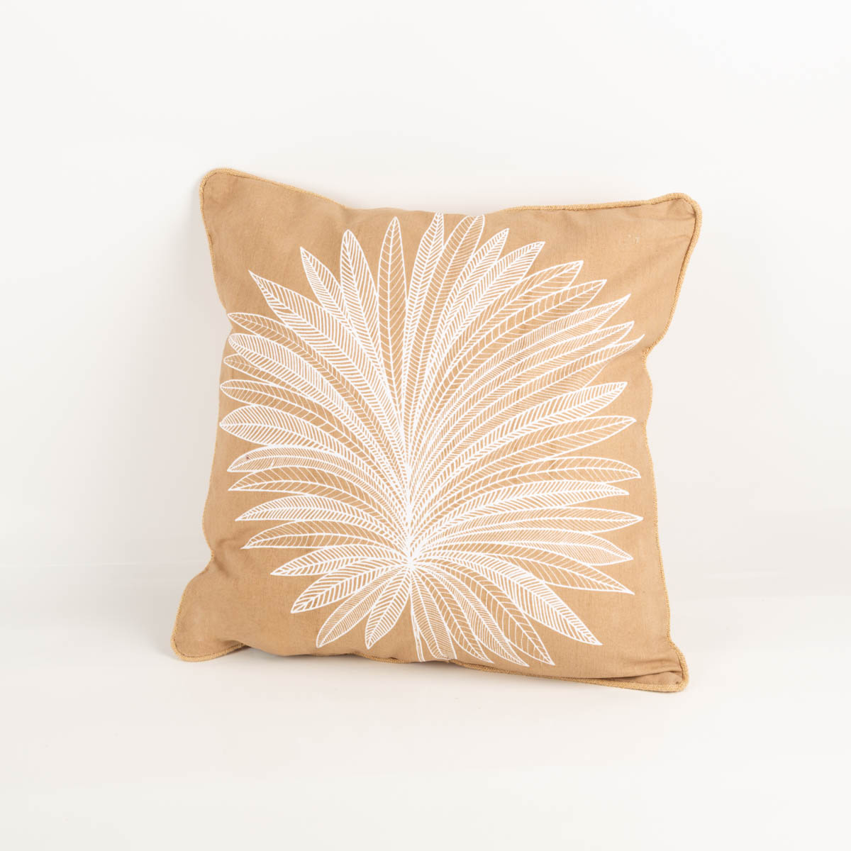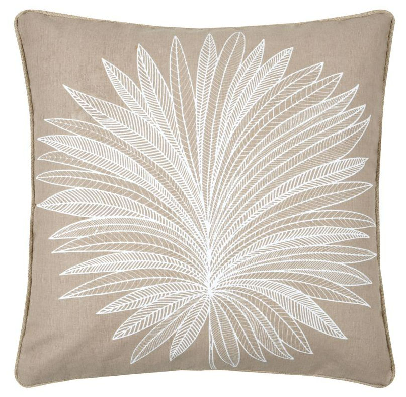 Dekokissen Palmenblätter mit Jute-Kederumrandung natur weiß 50x50 cm