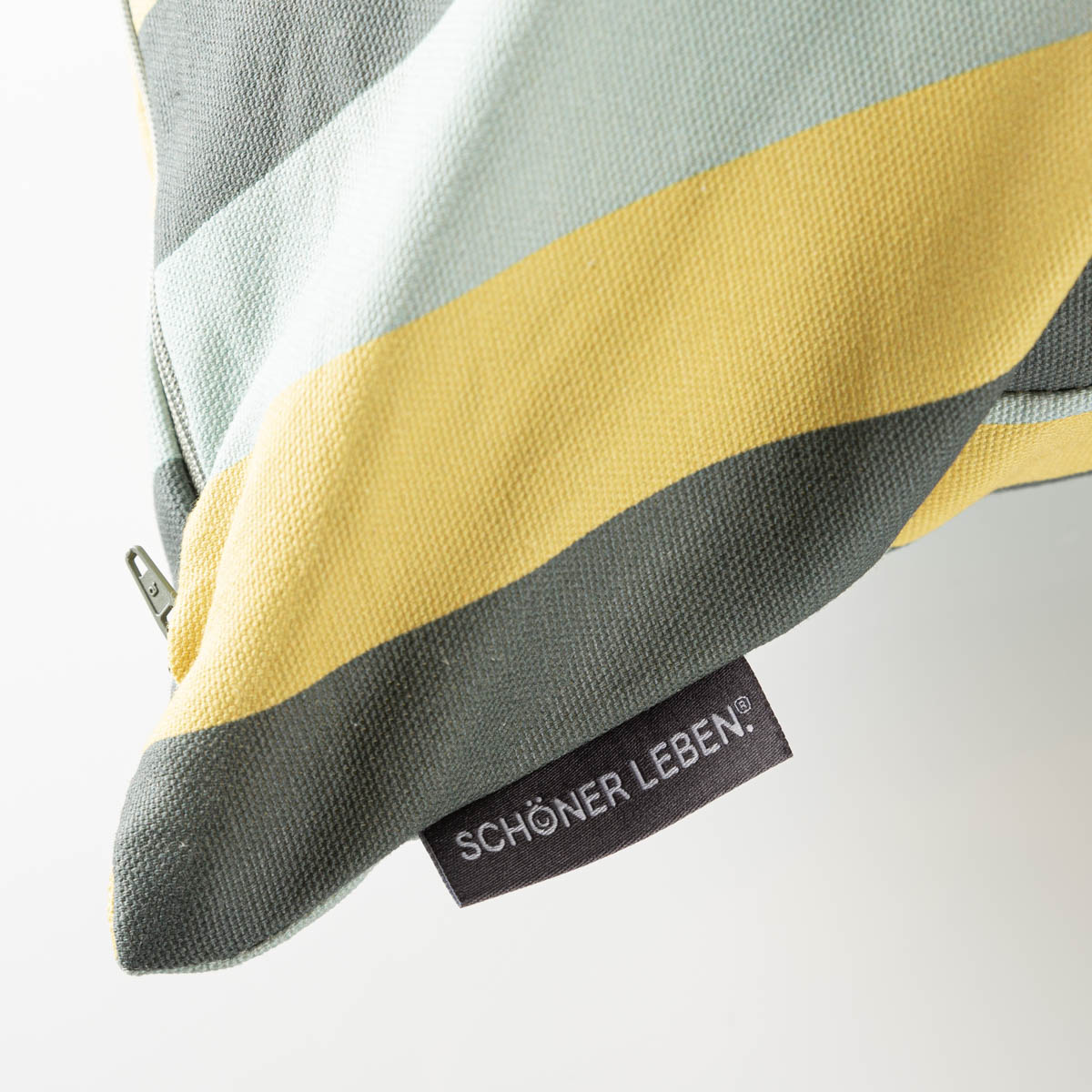 Kissenhülle aus Baumwolle mit Streifen in grün, grau und hellblau in versch. Größen von SCHÖNER LEBEN.