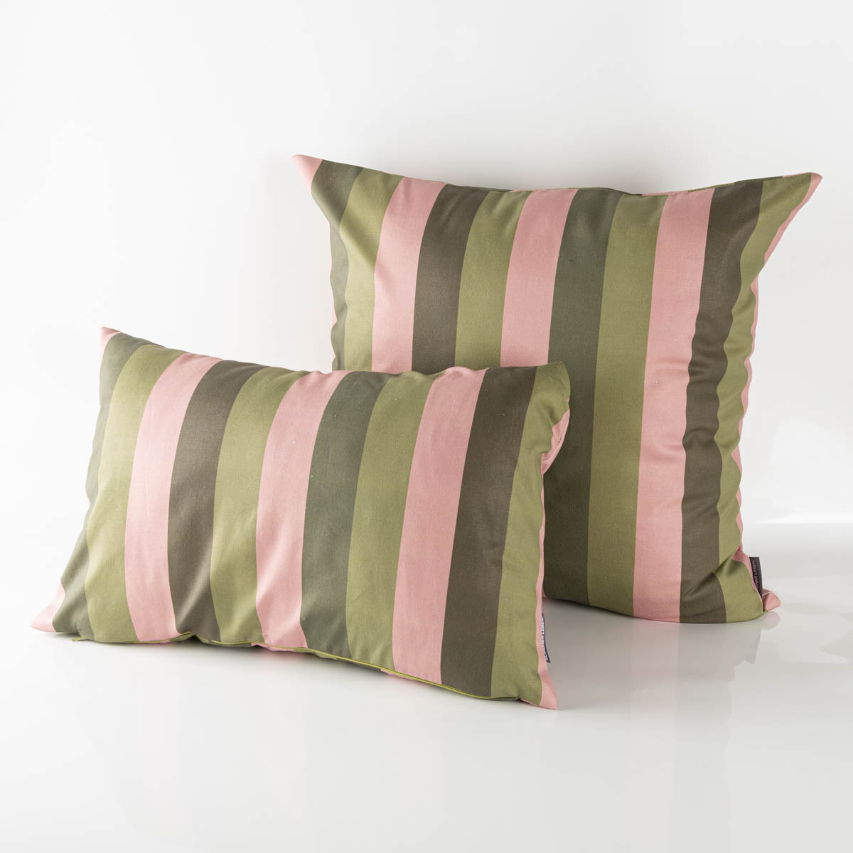 Wunderschöne Kissenhülle aus Baumwolle mit Streifen in Rosa, Braun und Grün in verschiedenen Größen oder nach Maß von SCHÖNER LEBEN.