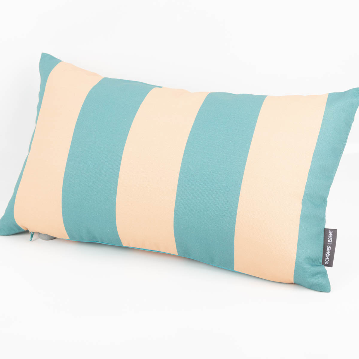 Kissenhülle mit modernem Streifen-Digitaldruck in apricot und grün – aus der SCHÖNER LEBEN. Kollektion