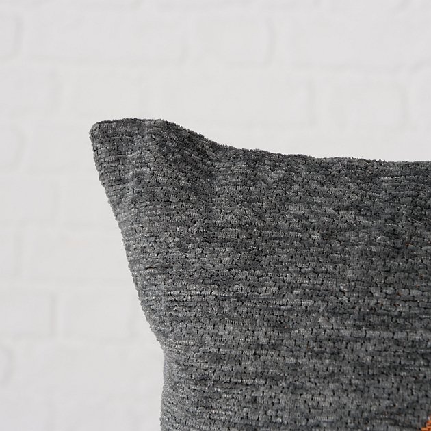 Flauschige Chenille-Vorderseite mit markantem Motiv und uni graue Rückseite für eine harmonische und vielseitig kombinierbare Optik