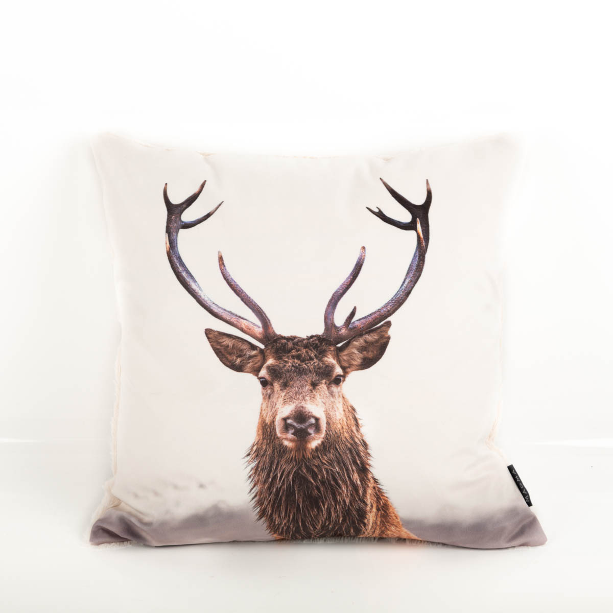 Kissenhülle Hirschkopf mit Kuschelrückseite weiß 45x45cm von Magma