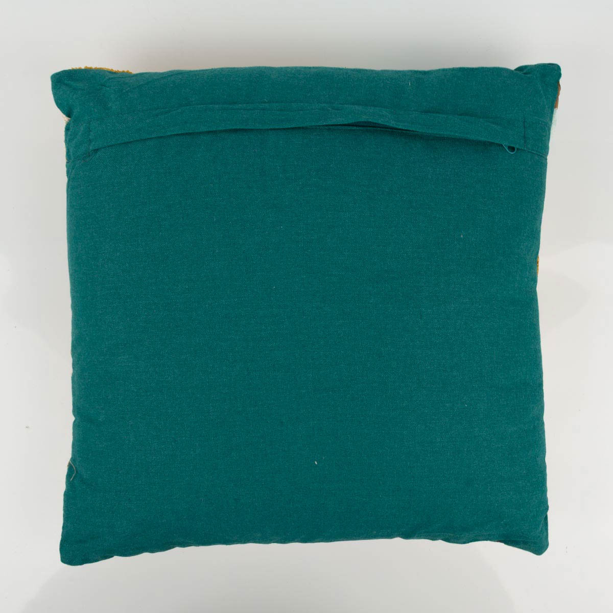 Du suchst ein modernes Statement-Piece? Dieses Kissen kombiniert eine strukturierte Vorderseite mit verschiedenen Texturen und klaren, geometrischen Formen. Die Rückseite ist aus uni türkiser Baumwolle gefertigt – pur, griffig und perfekt zum Kombinieren. Durch den Reißverschluss beziehst du das Kissen schnell; das Füllkissen ist bereits inklusive.