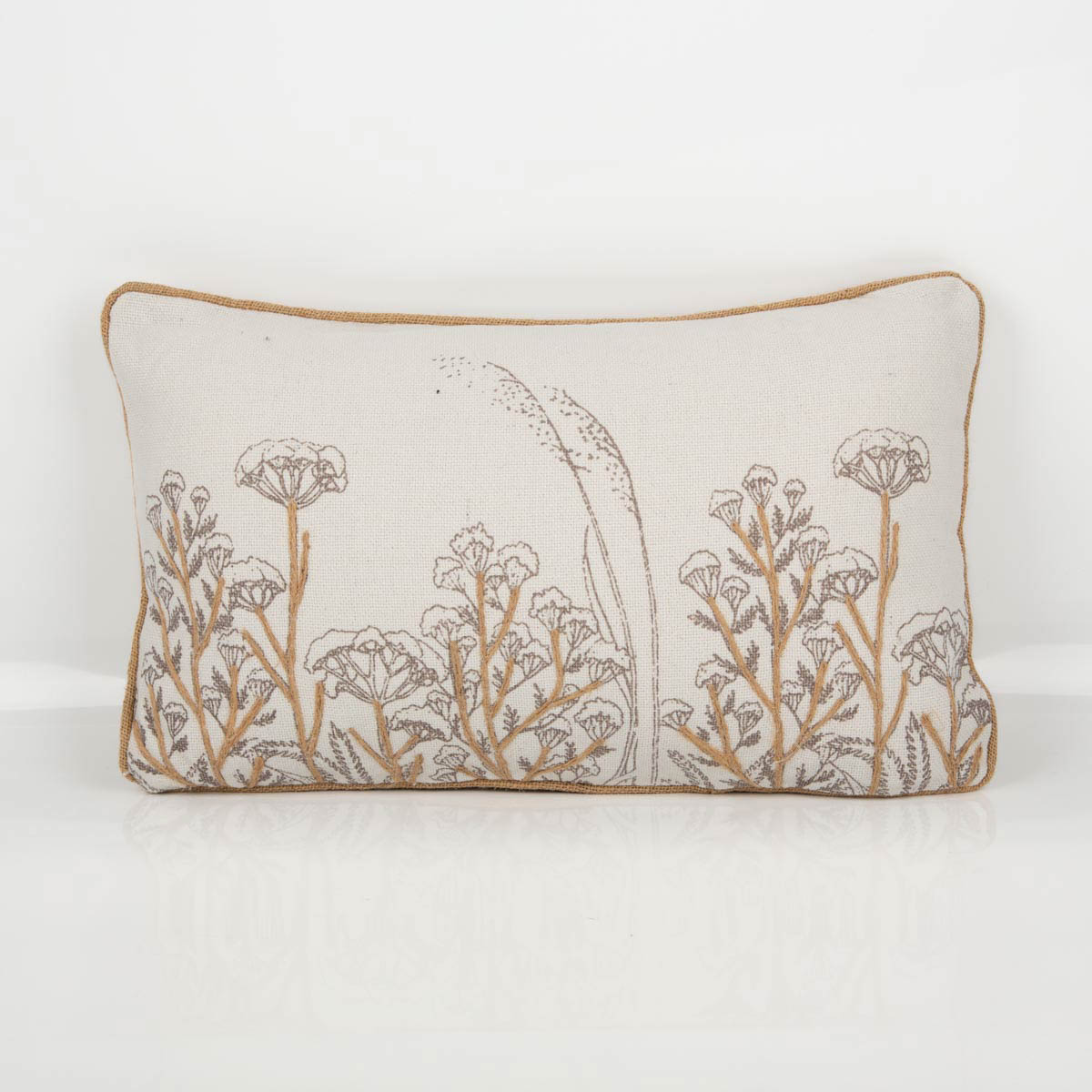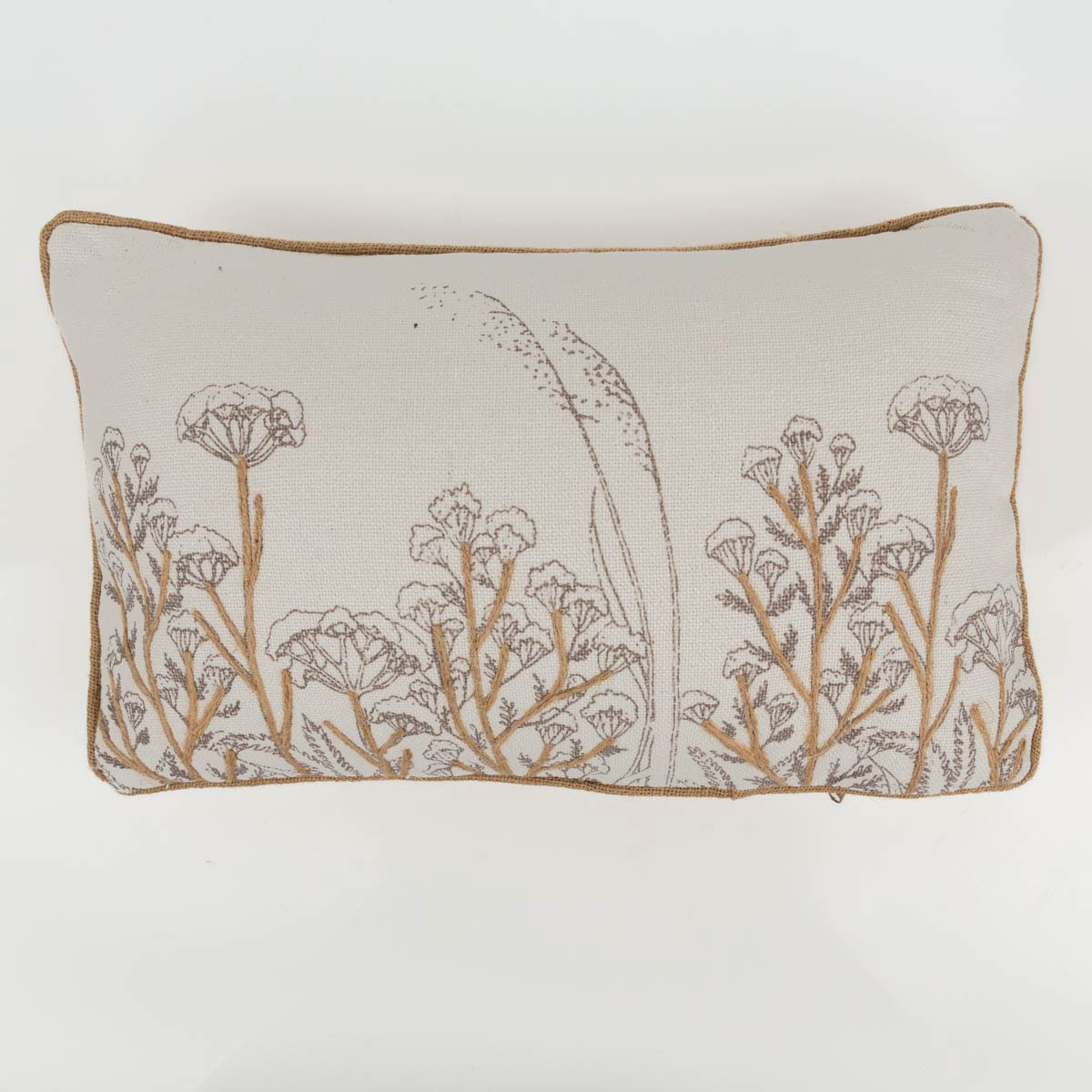 Kissen mit Gräsern und Jute-Applikation Kederumrandung 30x50cm weiß
