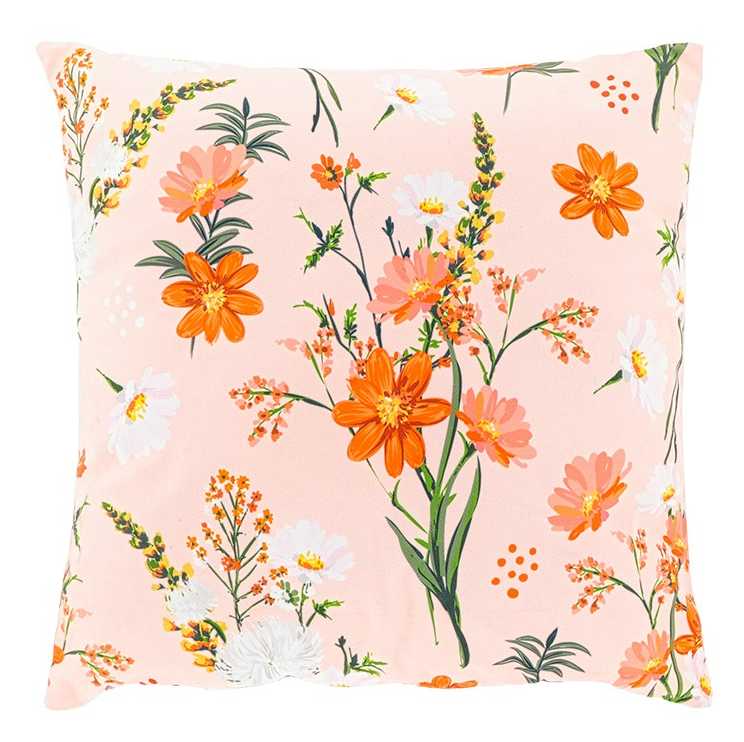 Samtkissenhülle Blumen apricot orange – frühlingsfrisch in 45x45 cm