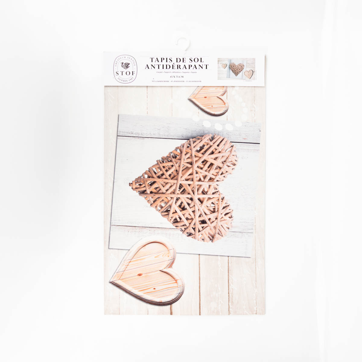 Fußmatte im romantischen Landhausstil mit Herzmotiven in Holzoptik