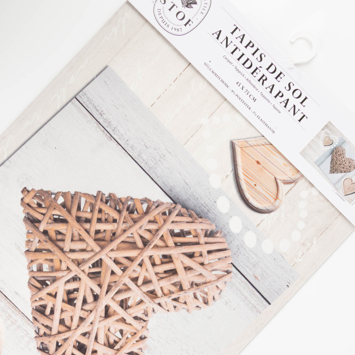 Fußmatte Landhaus Herzmotiv Beige Braun 45x75cm – Waschbar & Rutschfest