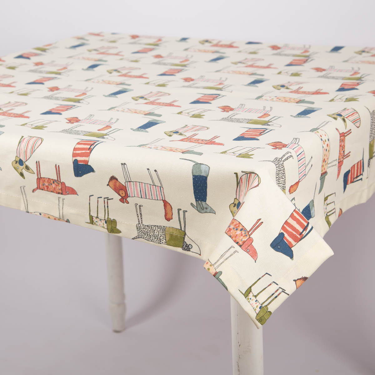 Mitteldecke Tischdecke aus Baumwolle mit Hunden beige bunt in versch. Größen von SCHÖNER LEBEN.