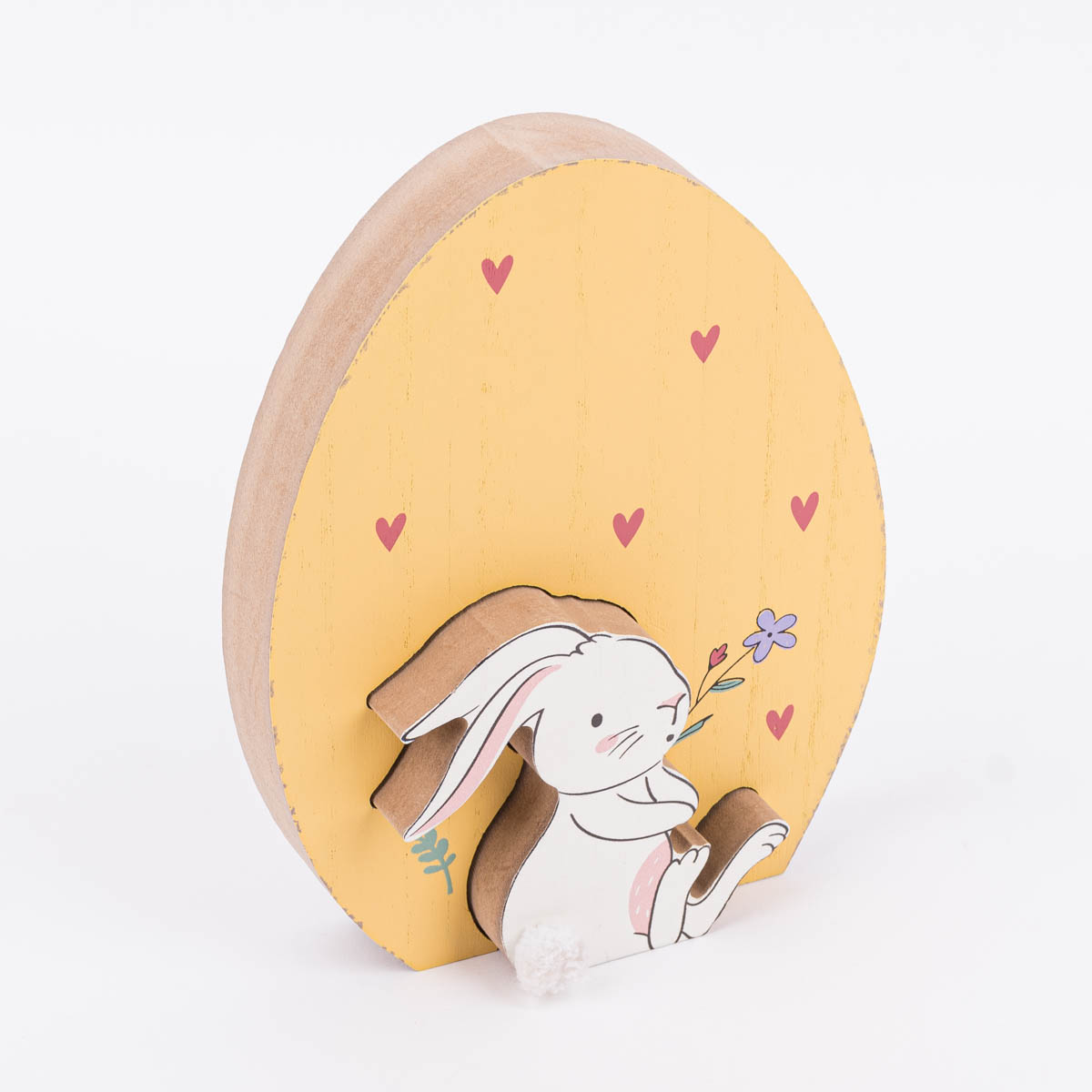 Dekofigur Ei mit Hasen Cut-Out aus MDF in rosa mint oder gelb 14x2,5x18cm