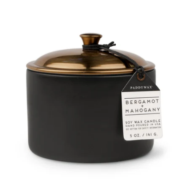 Duftkerze Sojakerze Hygge Black Bergamot & Mahogony 141g im Keramiktopf mit Metalldeckel von Paddywax