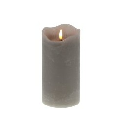• LED Echtwachskerze in Grau mit warm leuchtender 3D-Flamme