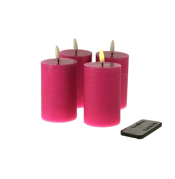 • 4 LED Kerzen aus Echtwachs in kräftigem Pink