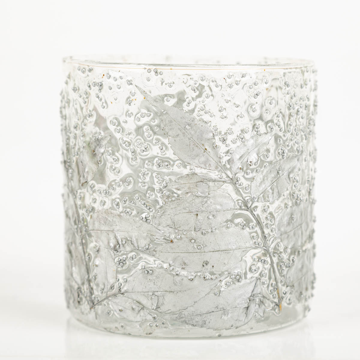 Windlicht Leaves Blätter transparent silber 10x10cm von Werner Voss