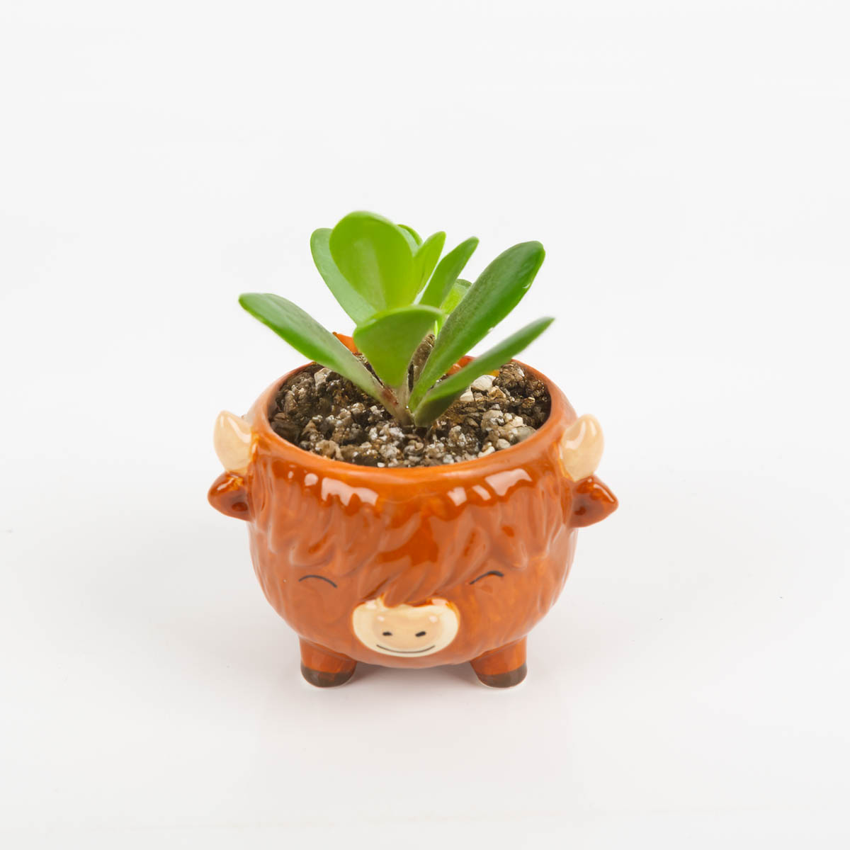 Der kleine Übertopf in Form einer lächelnden Highland-Kuh bringt sofort gute Laune auf dein Fensterbrett. Perfekt für Minis wie Sukkulenten, Kräuter oder Ableger und ein süßes Geschenk für Pflanzenfans.